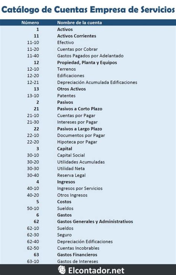 Catálogo de cuentas