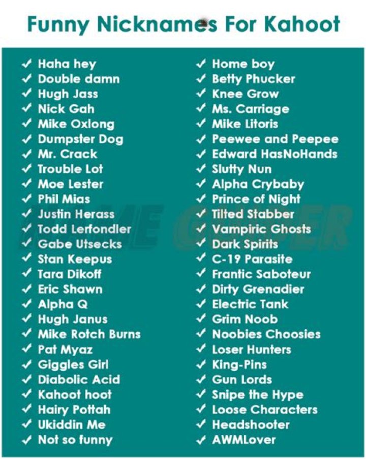 - Creative: Funny Kahoot names can be a great way to show off your creativity. You can come up with a name that is unique and memorable, or you can choose a name that references a popular meme or inside joke.