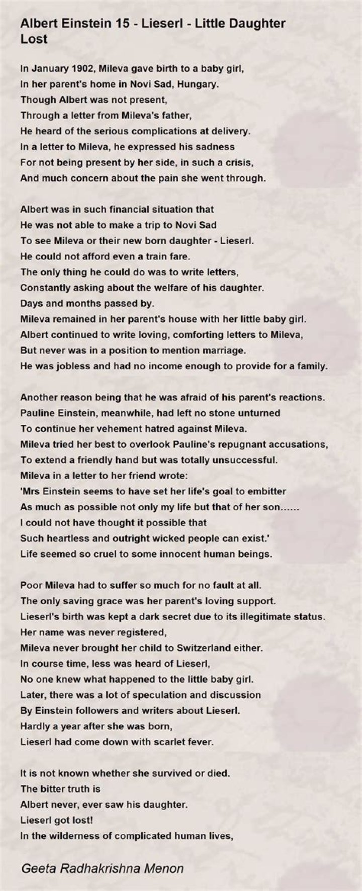 Lieserl Einstein, The Secret Daughter Of Albert Einstein