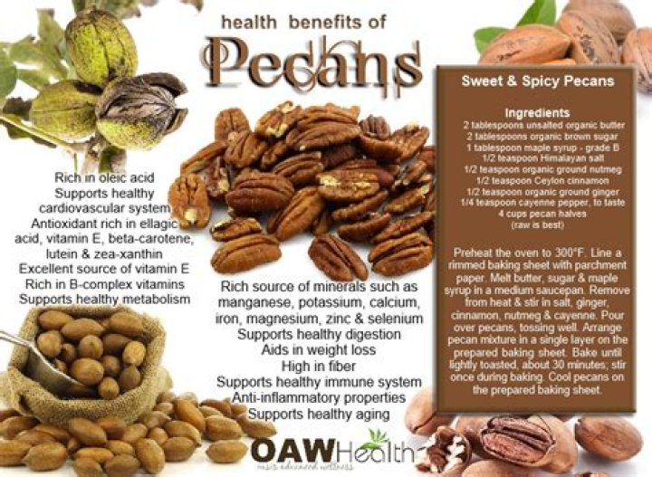 - Heart Health: Rich in monounsaturated and polyunsaturated fats, pecans help lower cholesterol and reduce heart disease risk.