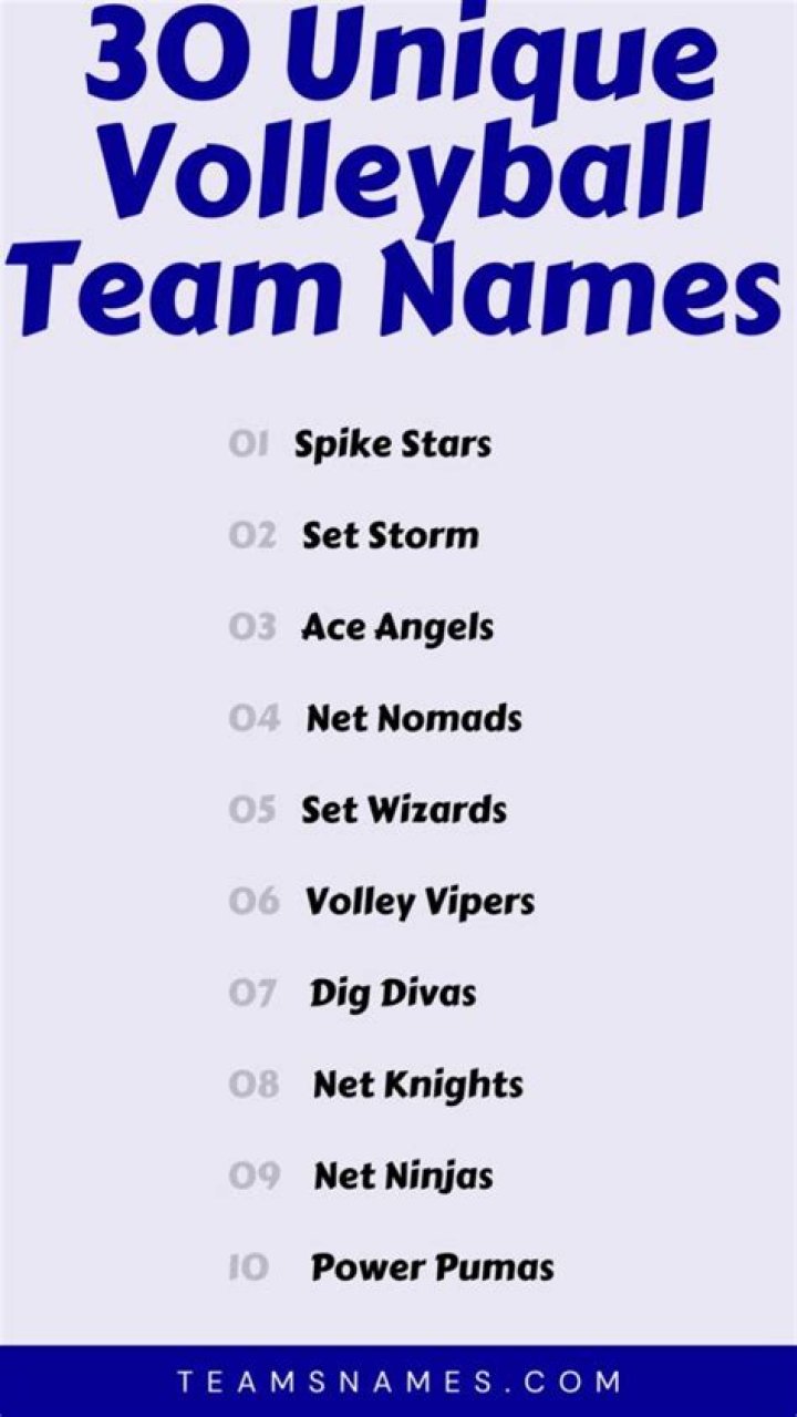 Volleyball team names ideas are an important part of team identity and can be a source of pride and unity for players. A good team name should be memorable, unique, and representative of the team's personality and goals.