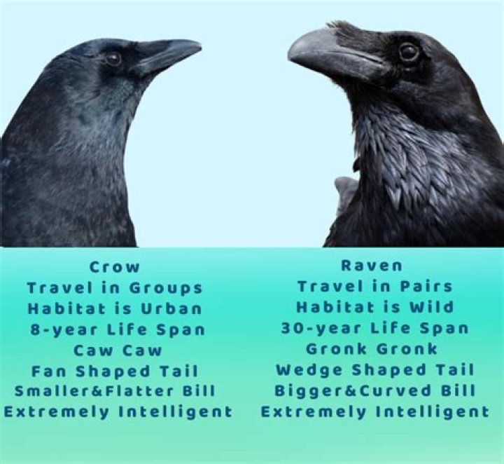 - Intelligence: Ravens are more intelligent than crows.
