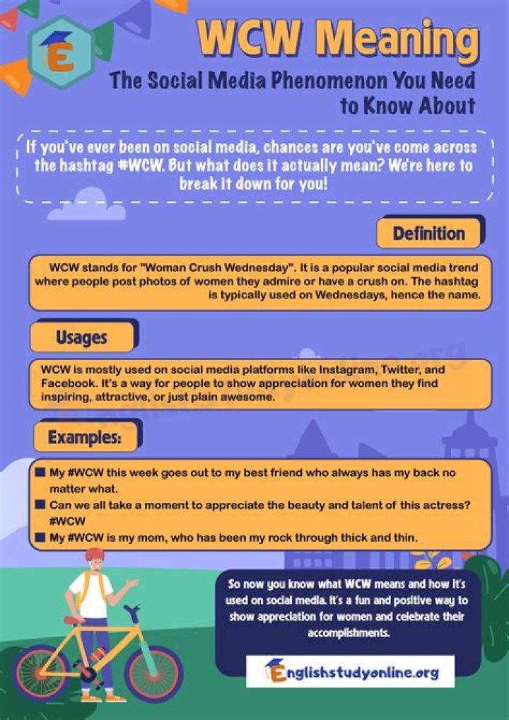 WCW is a social media trend where individuals share photos of women they find attractive or admire, celebrating diversity, female empowerment, and appreciation.