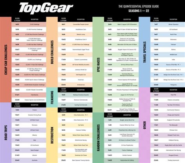 Question 3: What are some other notable and highly-rated episodes of Top Gear?Other highly-rated episodes include the "Bolivia Special" (Season 13), "The Middle East Special" (Season 11), and the "Patagonia Special" (Season 22). These episodes are known for their ambitious challenges, stunning scenery, and unforgettable moments.