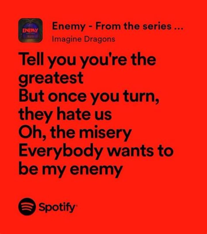 - Accessible lyrics: The lyrics of "Enemy" are relatable and easy to understand. The song's themes of self-doubt, resilience, and overcoming adversity resonate with a wide range of listeners. The lyrics are crafted in a way that is both personal and universal, allowing listeners to connect with the song on a deeper level.